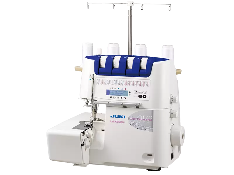 Possibilité de travailler en 2, 3 & 4 fils, réglage de la pression du pied, écart minimum entre les couteaux et les aiguilles permettant de magnifiques coutures courbes, silence & vibrations réduites au maximum,